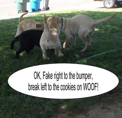 Our pups in the field. As they play, they learn.